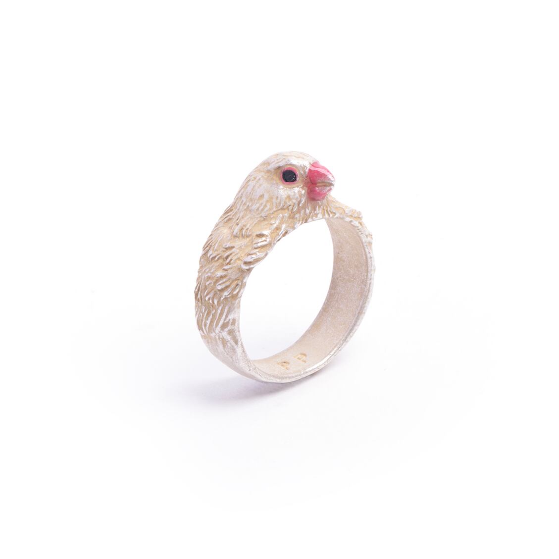 まんまるの文鳥がモチーフになったリング。