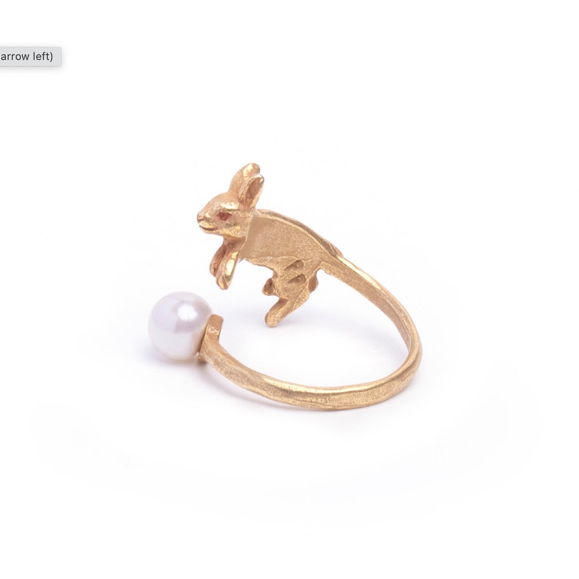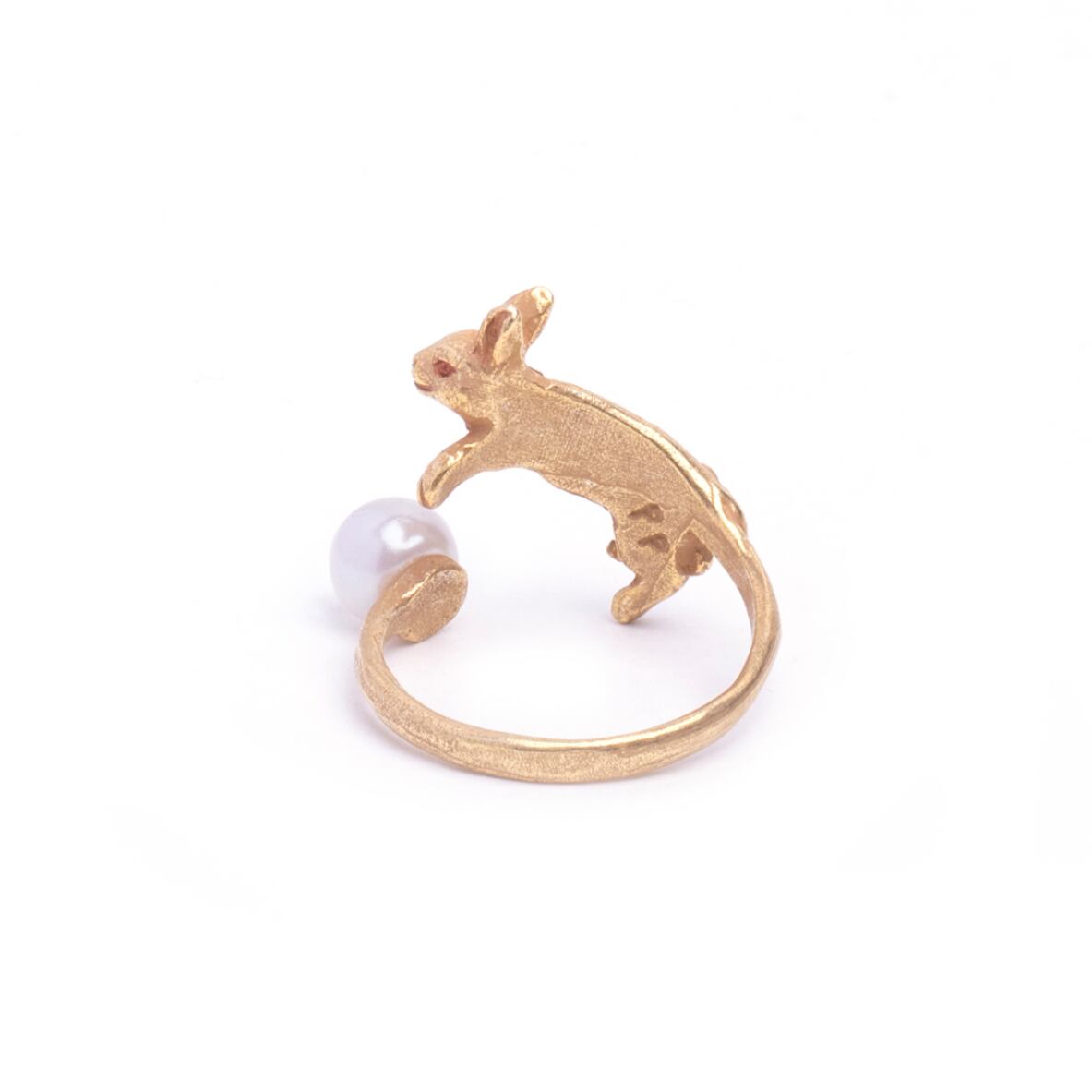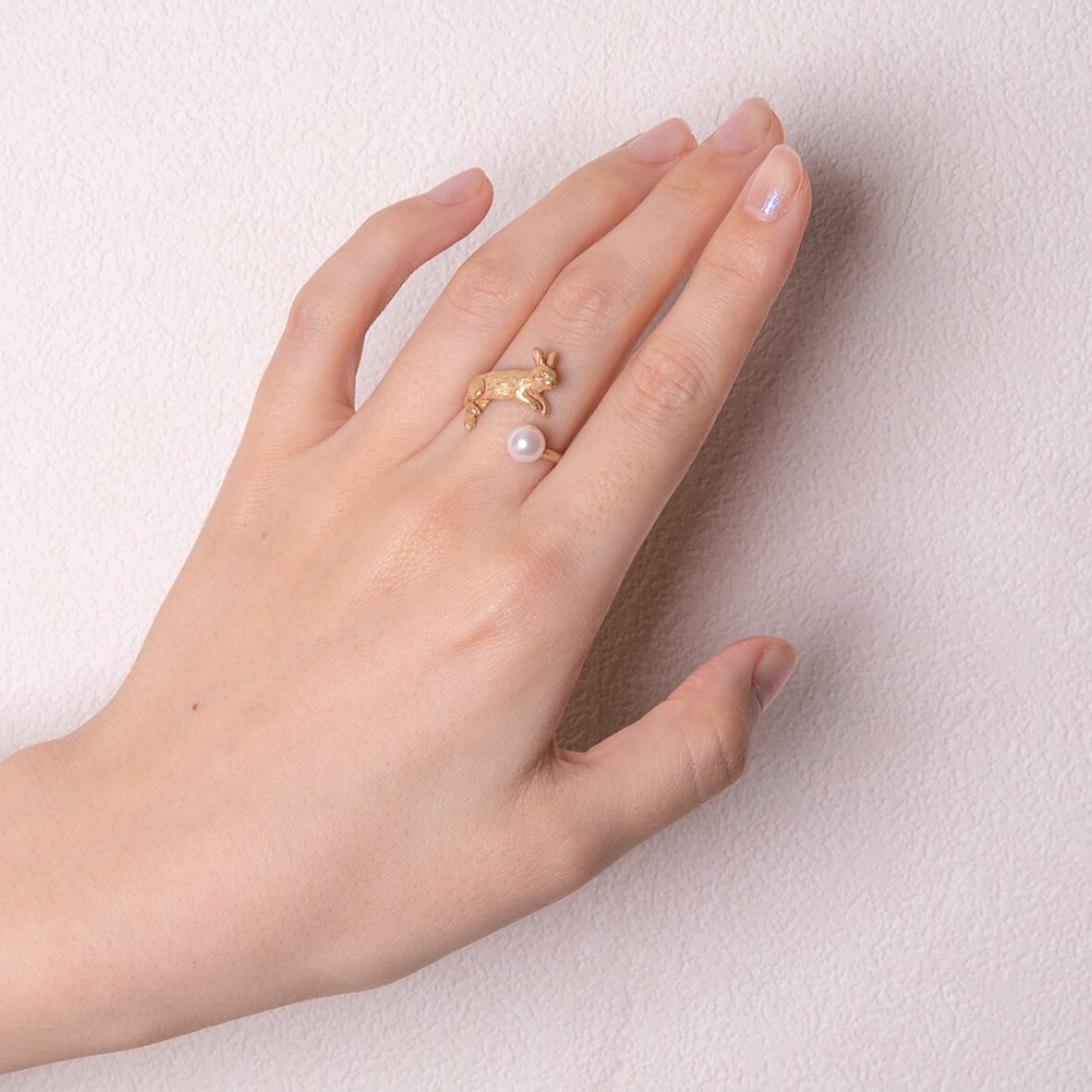 リラックスして床にコロンと寝そべっているポーズをモチーフにしたデザイン。着けると指の上でゆったりと過ごしている様子を楽しめます。